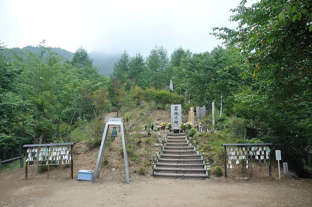 El monumento fue colocado poco después del accidente como punto central de duelo. Su ubicación está cuidadosamente escogida: una pequeña terraza natural que mira hacia la zona donde el vuelo 123 impactó, escondida entre árboles y laderas estrechas. Muchos visitantes interpretan ese detalle como un gesto simbólico, casi como si el memorial vigilara el lugar exacto en el que terminó el avión. No hay placas metálicas, ni carteles turísticos, ni explicaciones extensas. La piedra habla sola, y lo hace con la sobriedad que caracteriza al duelo japonés.