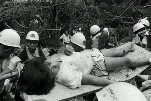 Encontrada en un árbol, sostenida por las ramas. Perdió a su familia en el accidente, pero su supervivencia se convirtió en símbolo nacional de resiliencia.